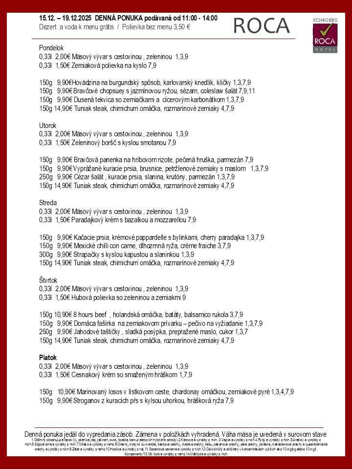 | Sunday | 11:30 - 20:00 changes possible as needed |