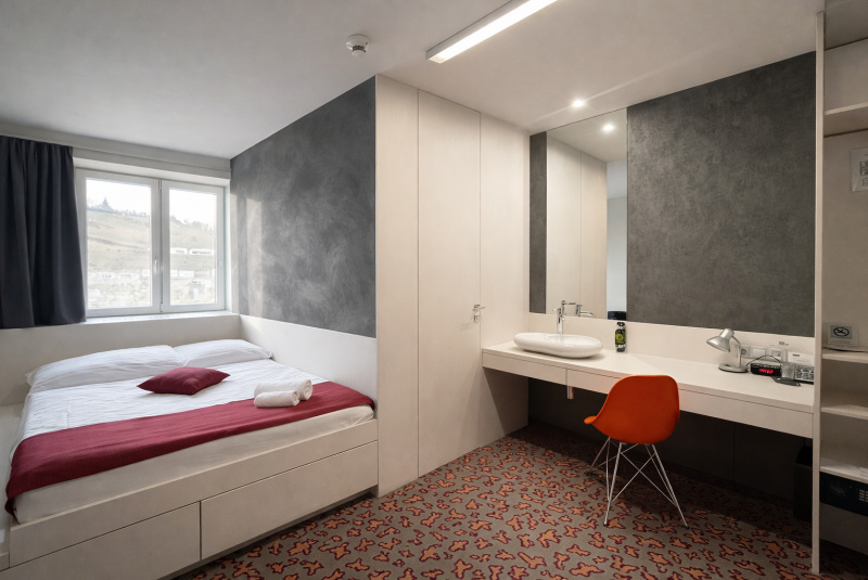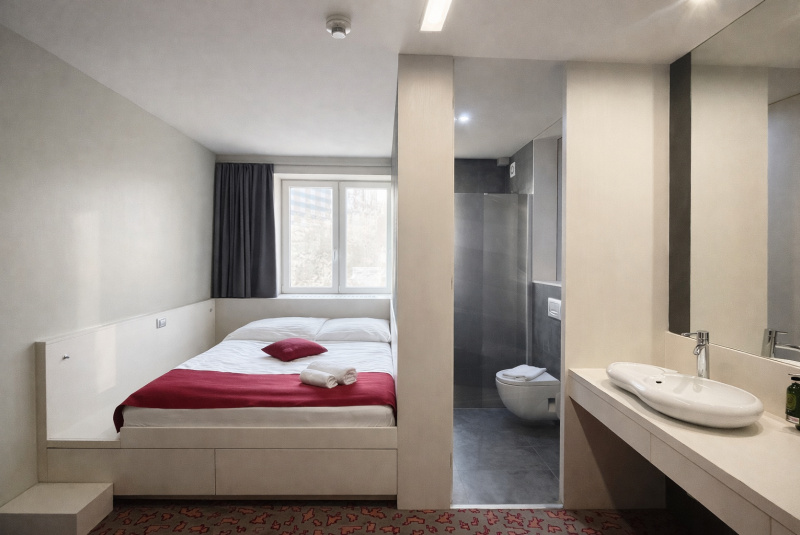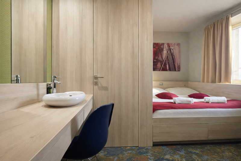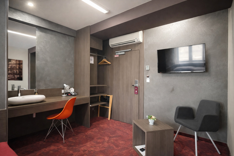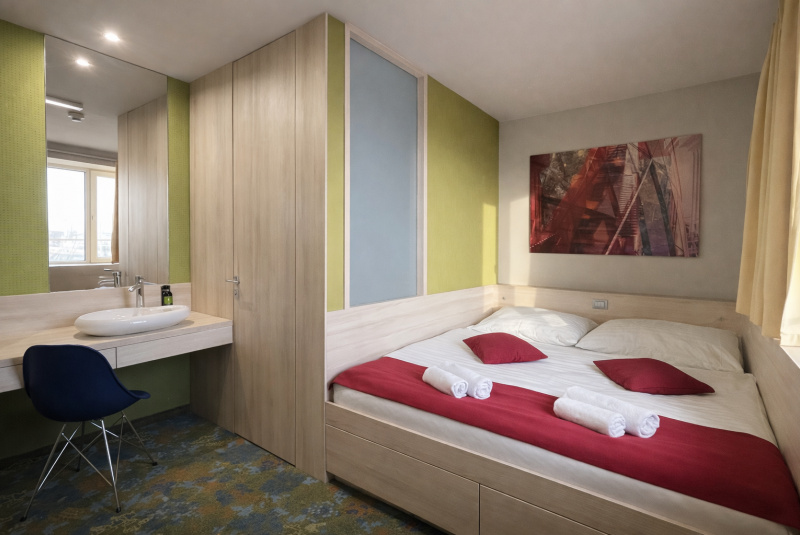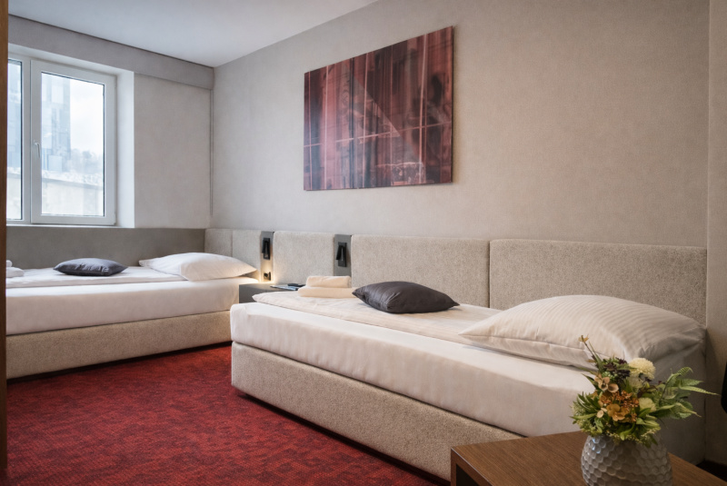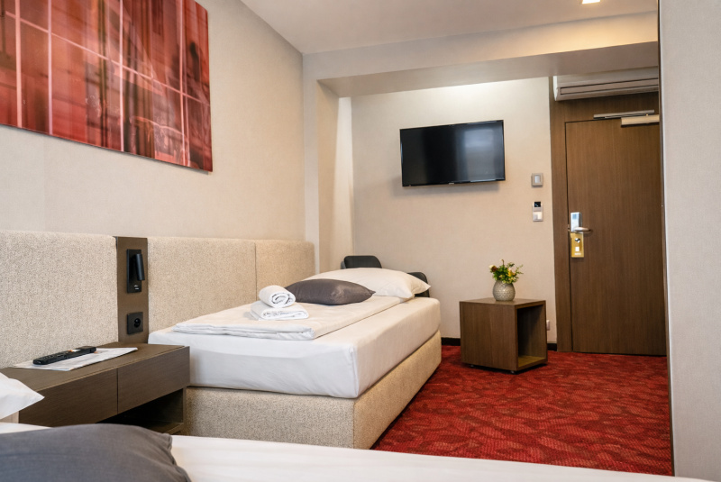 Modern, advantageously located hotel furnished in the style of urban elegance with a total capacity of 57 air-conditioned, comfortably furnished accommodation units with free high-speed Internet connection and rich breakfasts in the form of Swedish tables.
