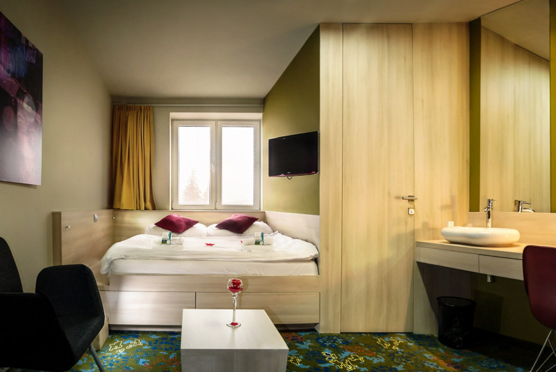 Modern, advantageously located hotel furnished in the style of urban elegance with a total capacity of 57 air-conditioned, comfortably furnished accommodation units with free high-speed Internet connection and rich breakfasts in the form of Swedish tables.