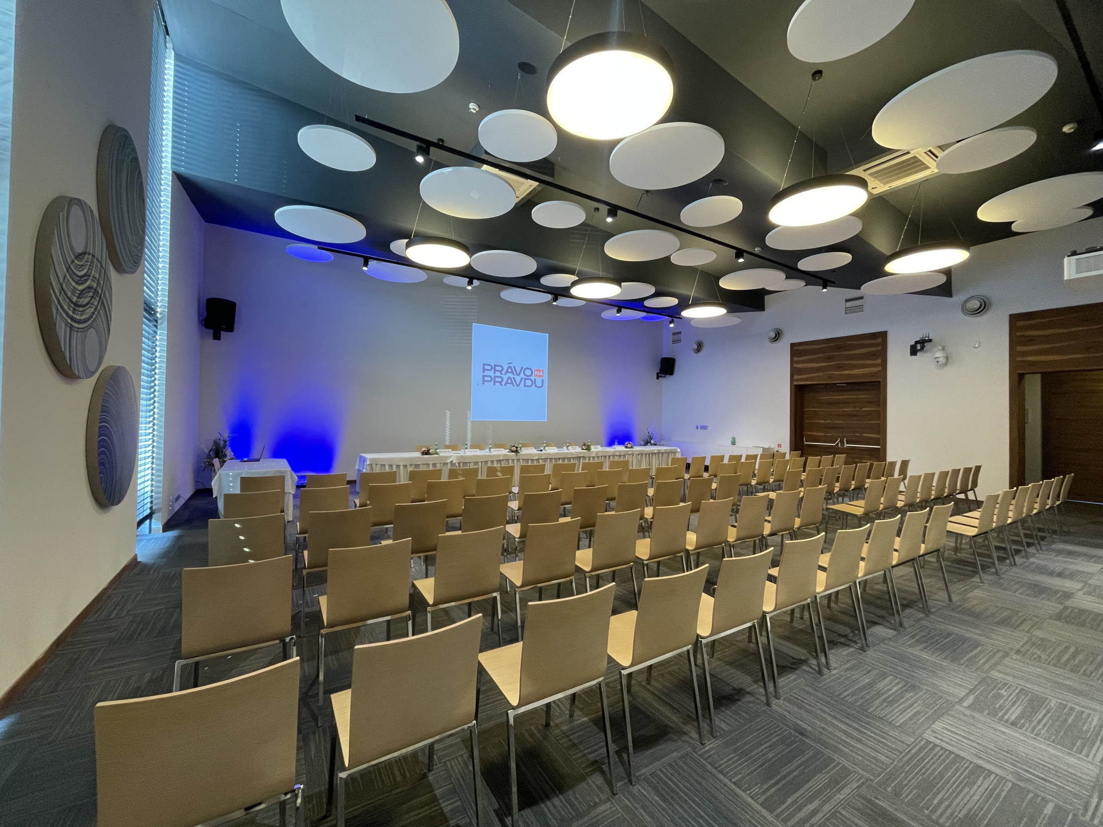 Conference and banquett hall ROCA with capacity of 200 people, which will fascinate you with the perfect combination of modern variable fully air- conditioned space with darkening, technical equipment at the highest level and professional services. Our free on-site parking place is available. We prepare your training, conference, meeting, banquet, prepare presentation with the highest attention to detail.
