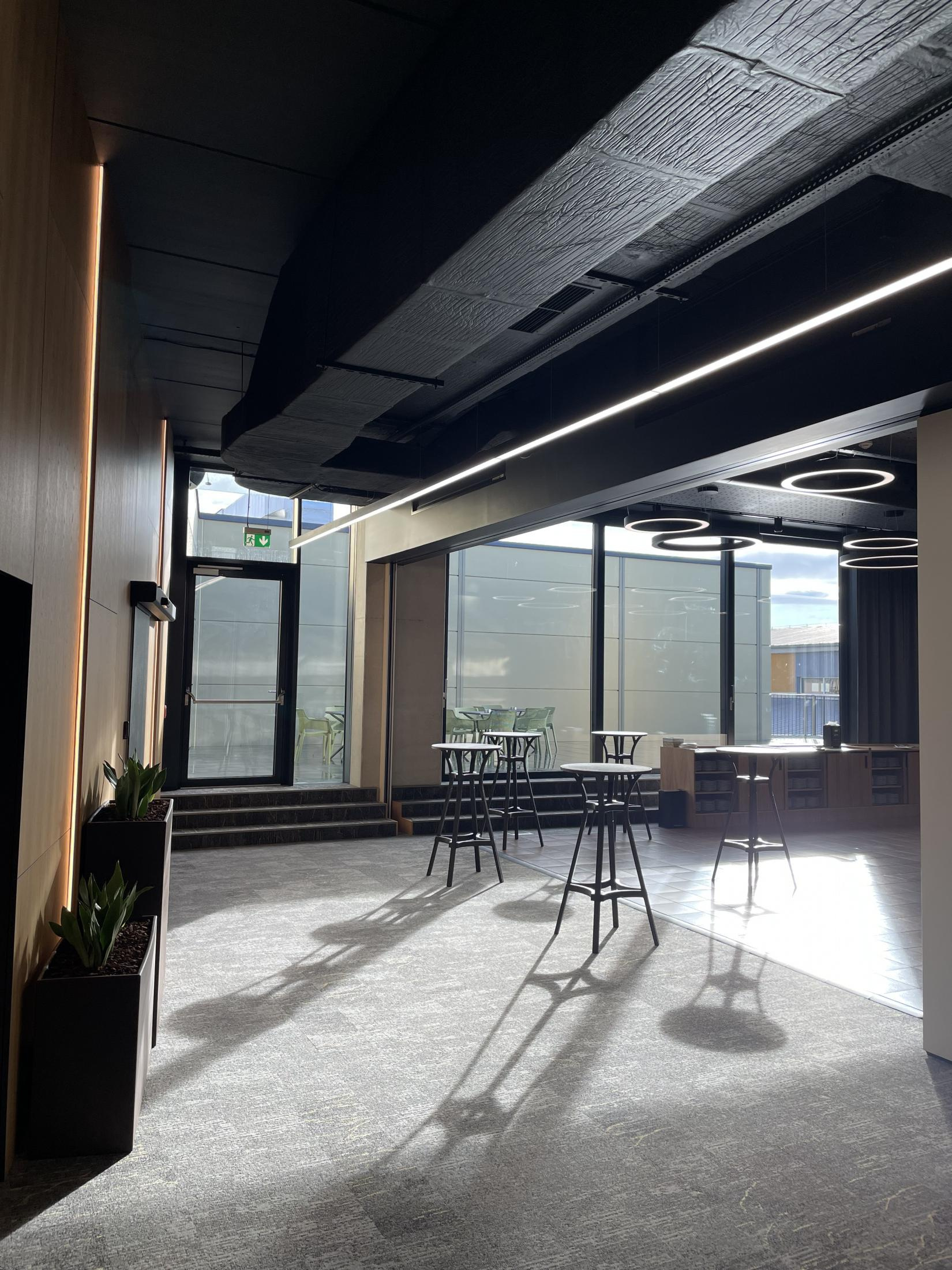A connected open area of approximately 600 m², suitable for large events, exhibitions, or networking.