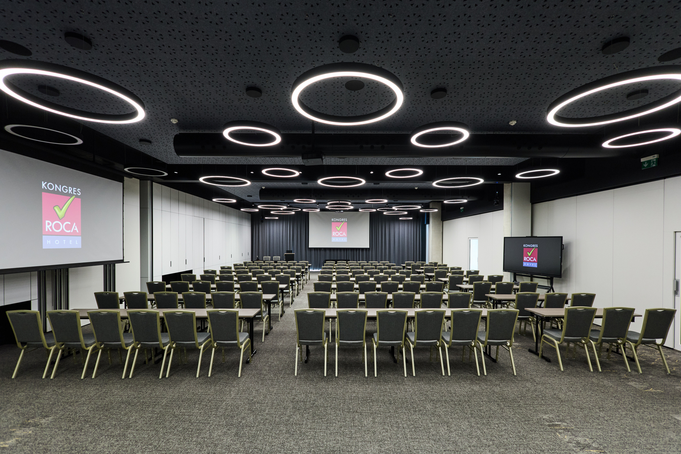 Nové Kongresové centrum ROCA ponúka hlavnú sálu s kapacitou 400 osôb, ktorú je možné rozdeliť na niekoľko menších sekcií. Dopĺňajú ju tri samostatné kongresové miestnosti, vhodné pre workshopy, školenia či menšie podujatia. Celý priestor je zároveň možné prepojiť a vytvoriť tak otvorenú plochu s rozlohou až 600 m² – ideálne riešenie pre veľké konferencie, galavečery, firemné eventy či výstavy.