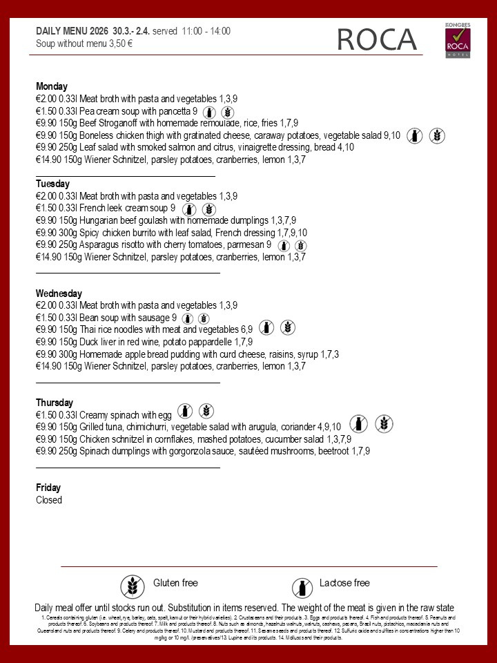 Daily menu
