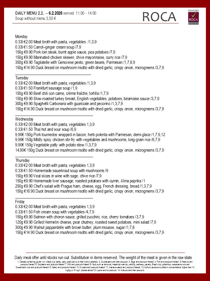 Daily menu