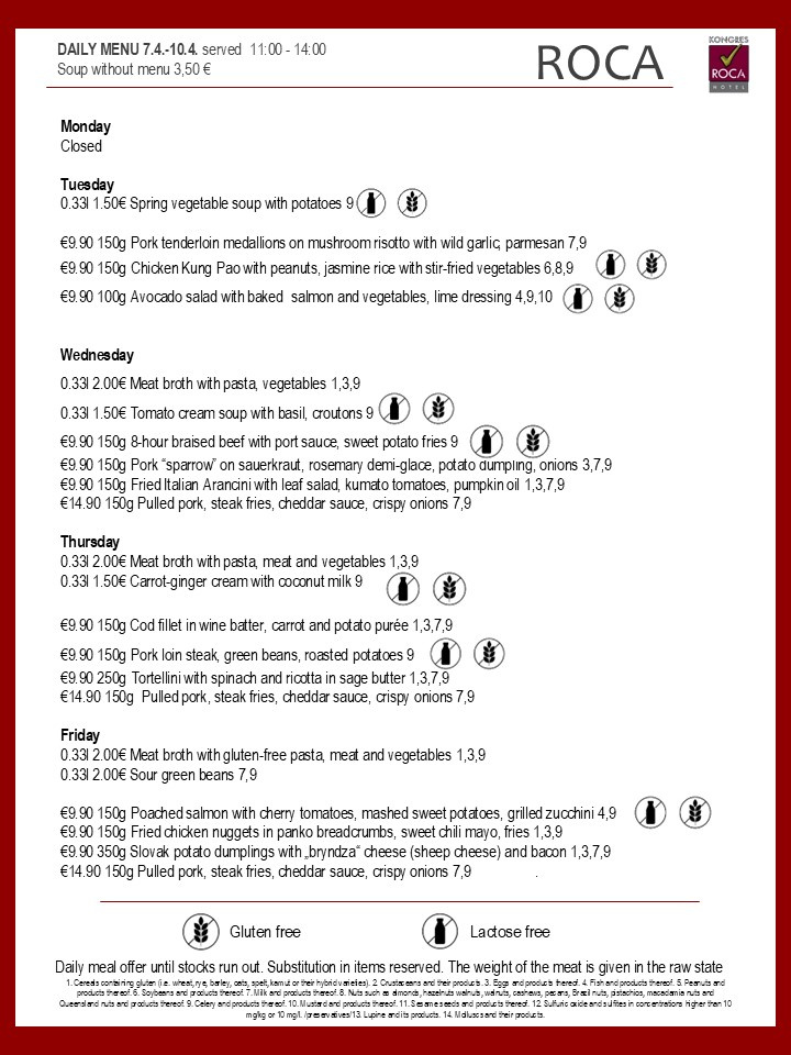 Daily menu