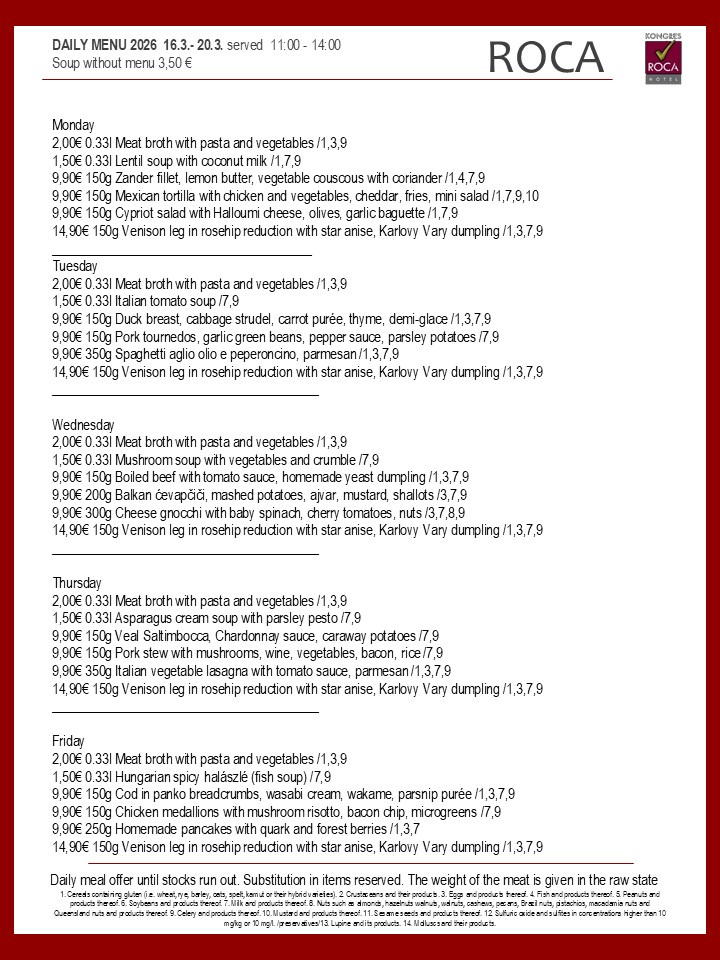 Daily menu