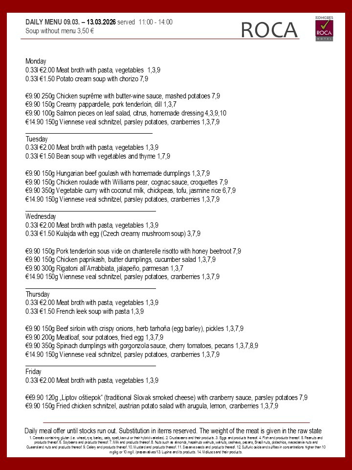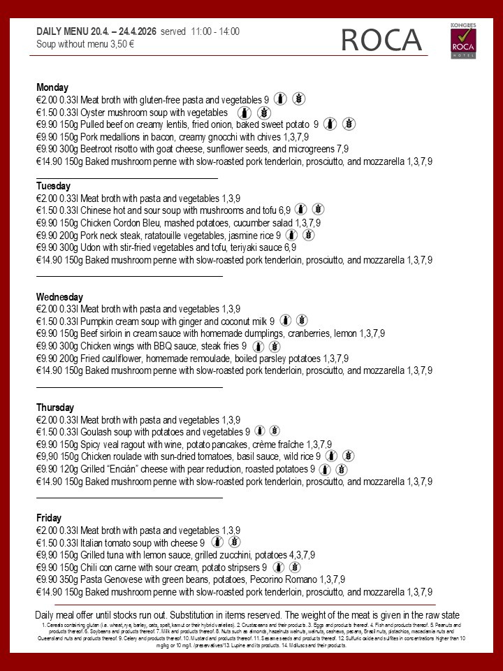 Daily menu