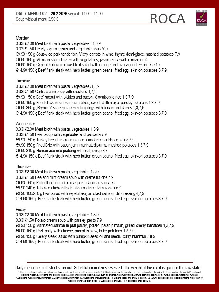 Daily menu