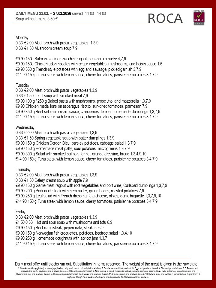 Daily menu