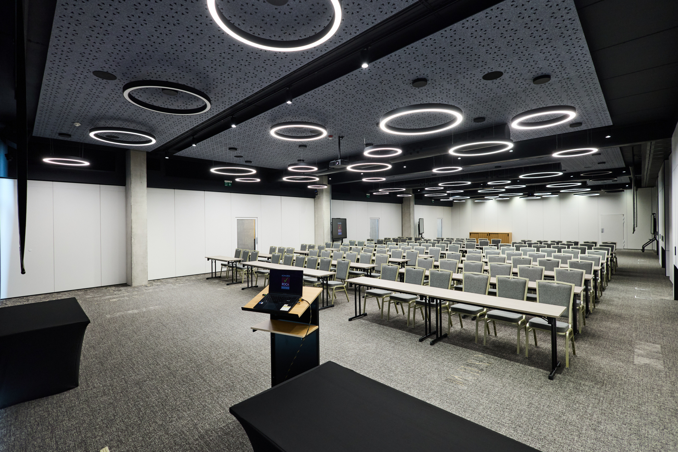 Nové Kongresové centrum ROCA ponúka hlavnú sálu s kapacitou 400 osôb, ktorú je možné rozdeliť na niekoľko menších sekcií. Dopĺňajú ju tri samostatné kongresové miestnosti, vhodné pre workshopy, školenia či menšie podujatia. Celý priestor je zároveň možné prepojiť a vytvoriť tak otvorenú plochu s rozlohou až 600 m² – ideálne riešenie pre veľké konferencie, galavečery, firemné eventy či výstavy.