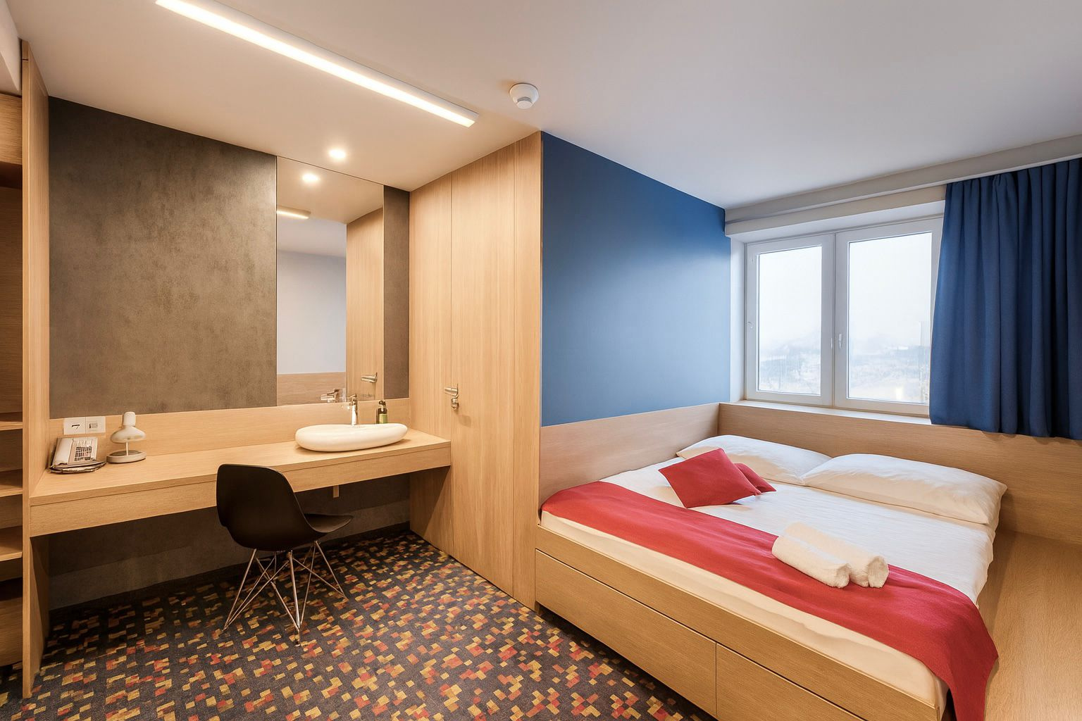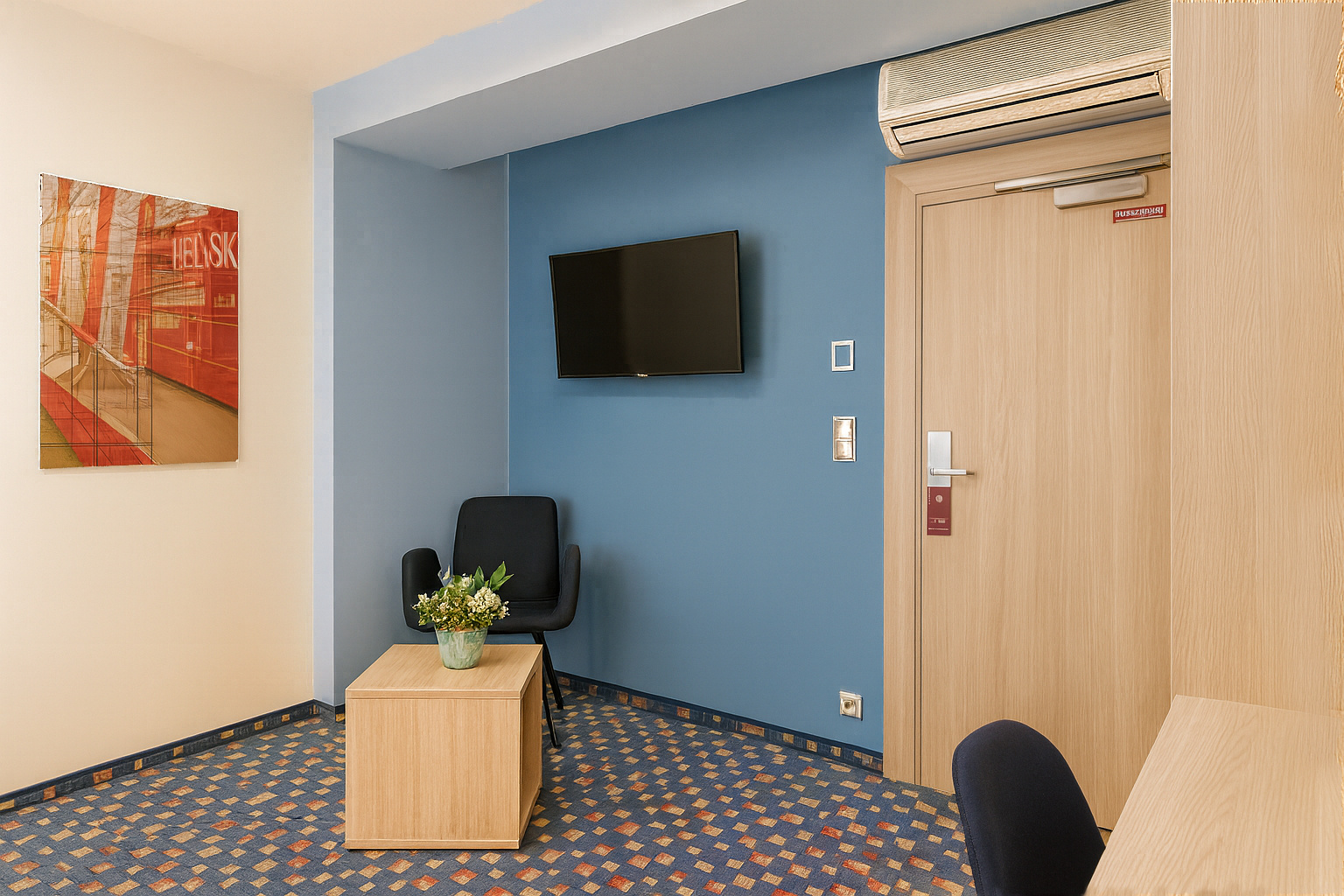 Moderný, výhodne situovaný hotel zariadený v štýle mestskej elegancie o celkovej kapacite 57 klimatizovaných, komfortne zariadených ubytovacích jednotiek s bezplatným vysokorýchlostným pripojením na Internet a bohatými raňajkami vo forme švédskych stolov.
