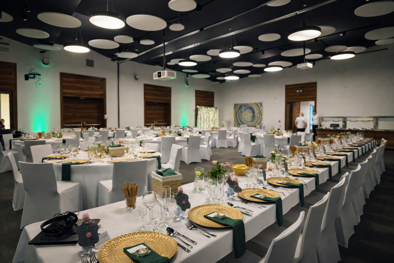 New conference and banquett hall ROCA with capacity of 200 people, which will fascinate you with the perfect combination of modern variable fully air- conditioned space with darkening, technical equipment at the highest level and professional services. Our free on-site parking place is available. We prepare your training, conference, meeting, banquet, prepare presentation with the highest attention to detail.